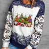 Tie-dyed Leopard Splicing Round Neck Sweater